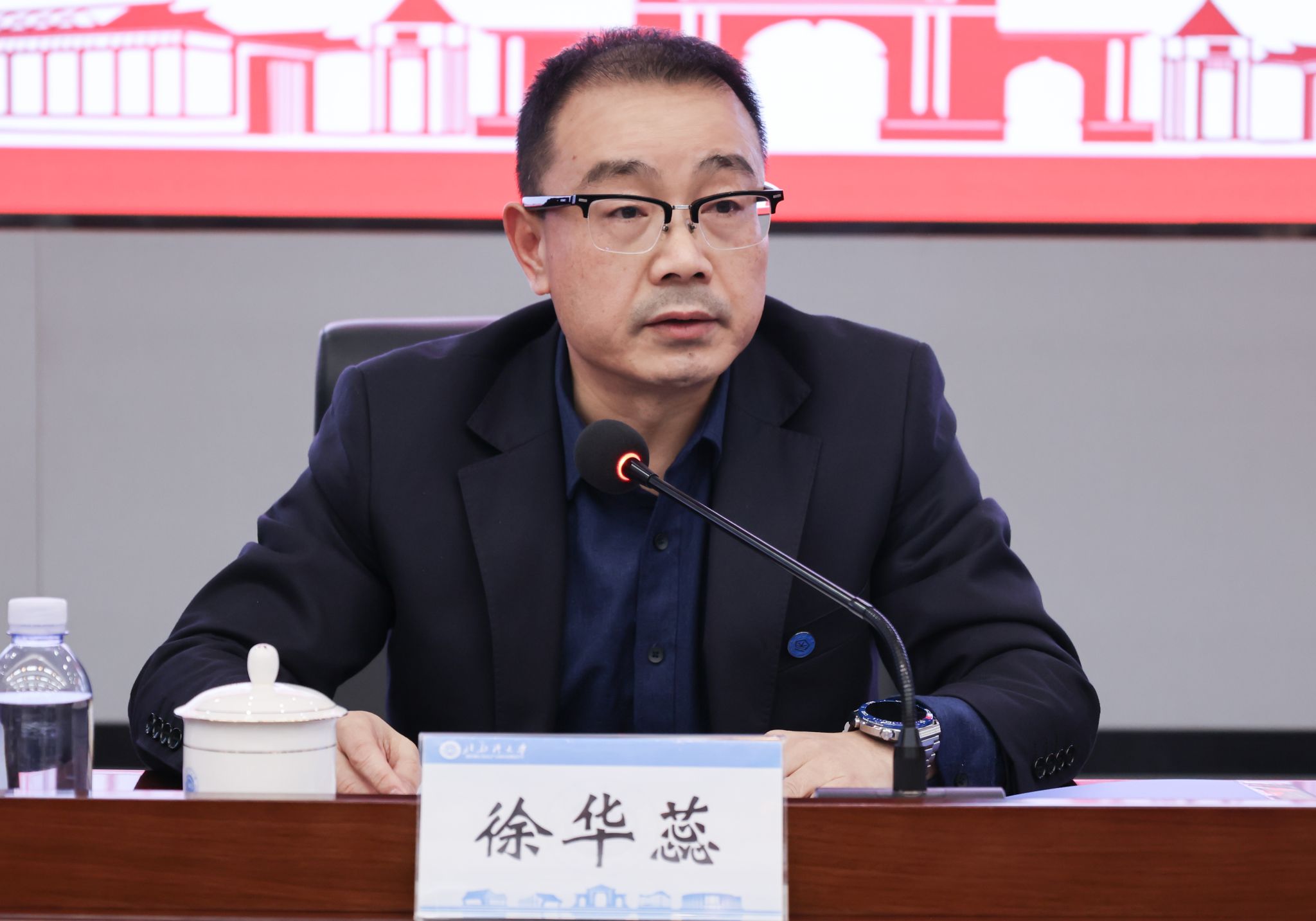 学校党委巡察工作领导小组成员及相关领导,第二巡察组全体成员,各二级学院主要负责人,学院分管实验室副职领导以及相关职能部门负责人参加会议。(周晟旻 摄)