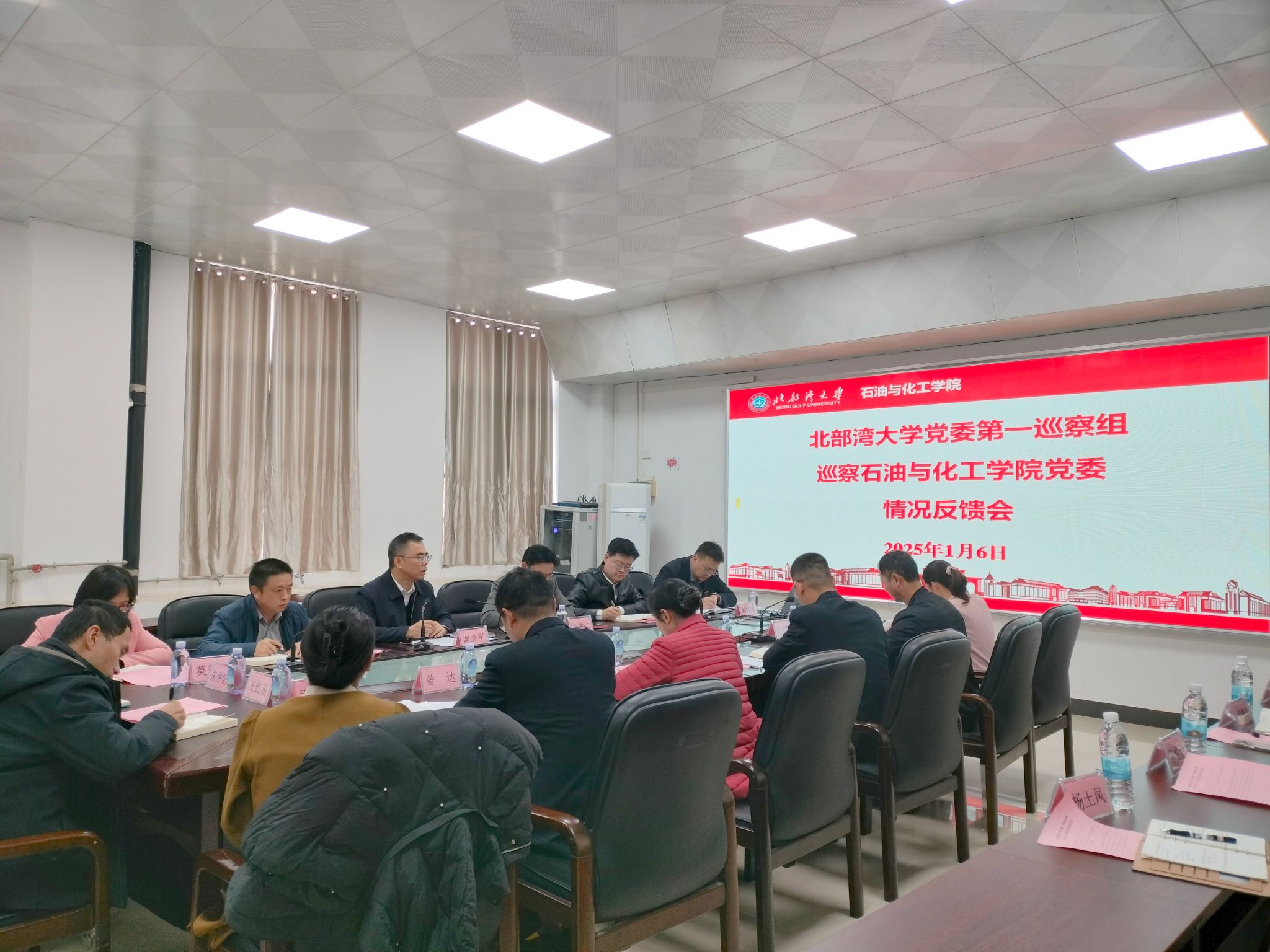 1月6日,学校党委第二轮巡察第一、第二巡察组分别向石油与化工学院党委、陶瓷与设计学院党委反馈巡察情况。自治区纪委监委驻北部湾大学纪检监察组组长,学校党委常委、纪委书记、巡察工作领导小组副组长谢立平出席会议并讲话。巡察情况反馈会由自治区纪委监委驻北部湾大学纪检监察组副组长、学校纪委副书记黄学仁主持。